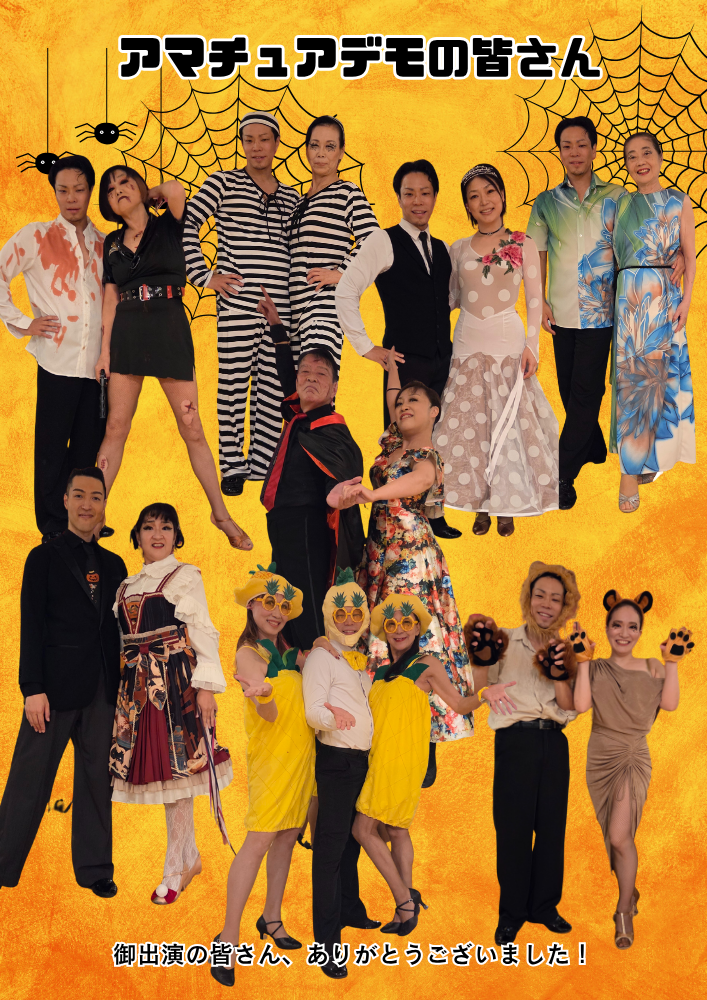 アマチュアデモでは、定番のゾンビからパイナップルやライオンキング等、皆さん思い思いの仮装でダンスを踊られていました。ペアごとに個性あふれる演技が続き、